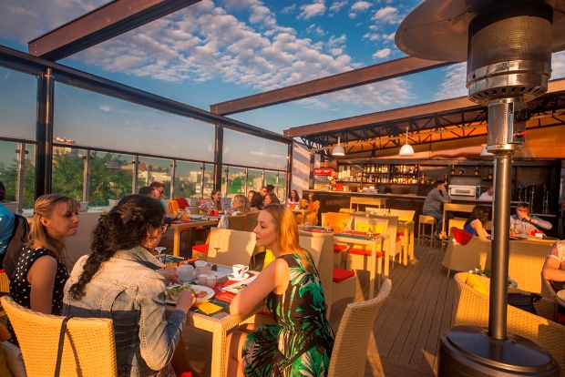 Одна из самых популярных и светских летних веранд, расположившаяся на крыше трехэтажного ресторанного комплекса. Европейский уровень начинается с самого входа, продолжается в интерьере и обслуживании, заканчивается качеством приготовленных блюд и напитков. В выходные дни вы сможете продолжить ночь в клубе, спустившись в цокольный этаж здания, а затем встретить рассвет в кругу самых близких друзей на крыше с бокалом прекрасного вина.