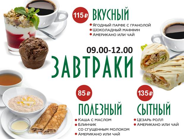 Ресторан быстрого питания "Гирос" предлагает завтраки на любой вкус! Вы можете выбрать один из трех завтраков, который придется вам по вкусу! Ежедневно с 9 до 12 часов от 85 рублей.