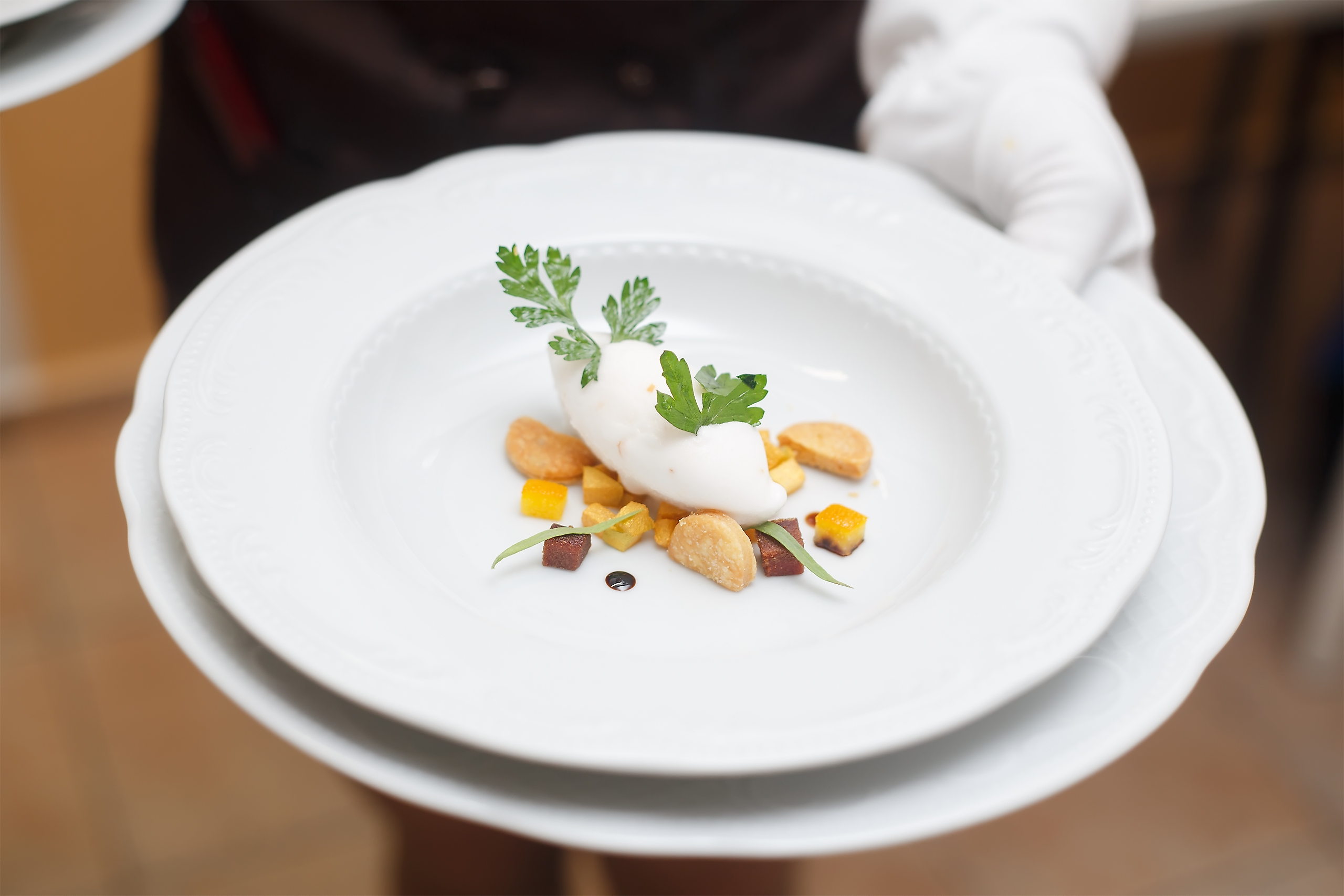 Благодаря таланту шеф-повара Эвариста Мирайеса (Лучший шеф-повар Испании-2011 года) и шеф-кондитера Марио Падиала в ресторане «МаксиМ. Избранное» воцарилась атмосфера настоящей Испании во всем ее многообразии вкусов и ароматов. Конфеты из куриной печени, сырный суп с икрой и апельсинами, барабулька с пряными травами и соусом «Гарум», говядина, томленная в собственном соку с томатами и необыкновенные средиземноморские сладости никого из гостей не оставили равнодушными.